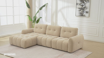 Ce canapé d’angle avec dossiers réglables permet d’ajuster la profondeur d’assise et le soutien du dos selon les besoins. Les dossiers se règlent simplement pour une position plus droite ou plus détendue, idéale pour la lecture, la détente ou les moments en famille.
