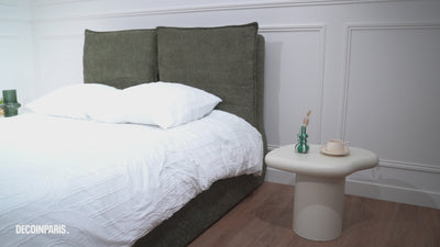 Lit coffre en tissu bouclette vert olive 180x200 cm MELY - DécoInParis