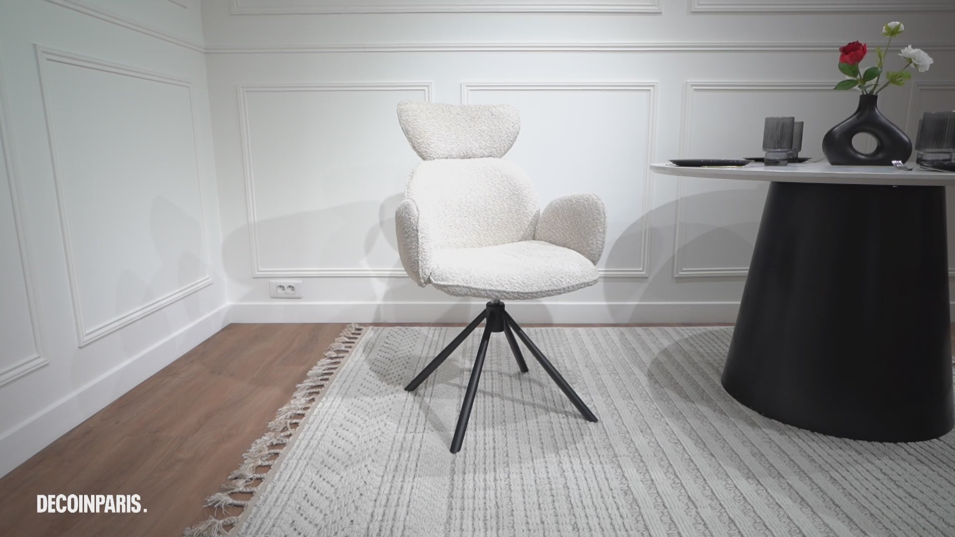 Son tissu effet peau de mouton beige apporte une ambiance chaleureuse, tandis que sa fonction pivotante offre une grande liberté de mouvement, rendant votre expérience de repas agréable. Avec son style raffiné, la chaise MAGY s'intègre harmonieusement à tous les styles de décoration, il apportera une touche moderne et cocooning à vos espaces.