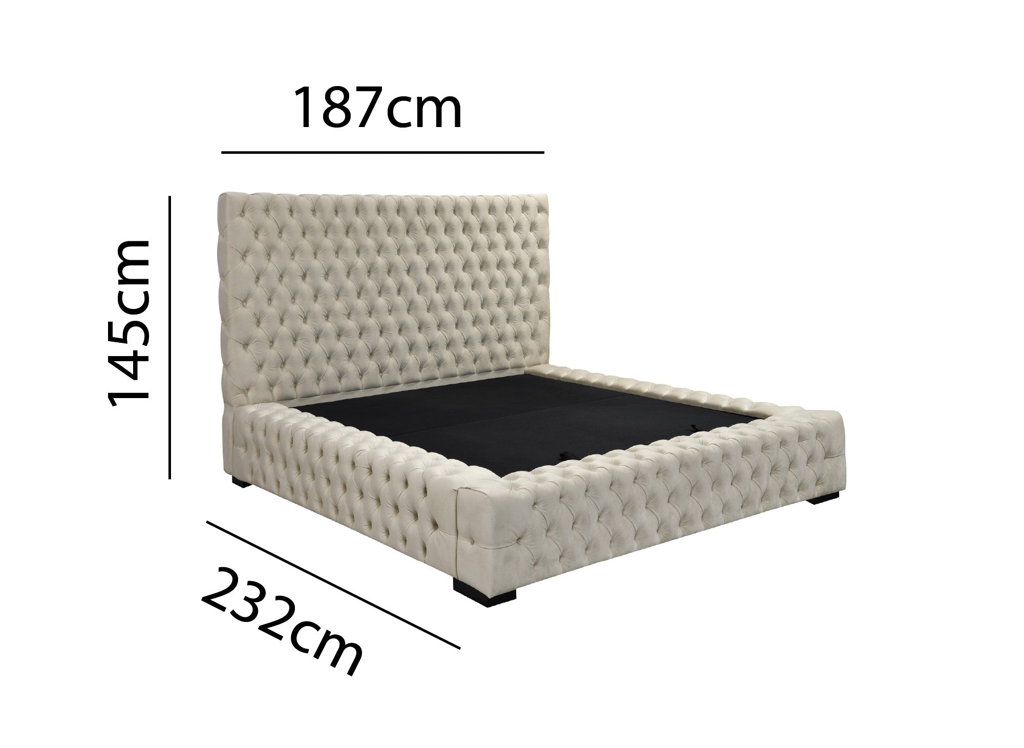 Diseñada para tu máximo confort, nuestra cama con almacenaje y tapizada en terciopelo capitoné te brindará una excelente sujeción durante tus momentos de descanso. El terciopelo beige, con su color atemporal y su tacto suave, convertirá esta cama en la pieza central de tu decoración.