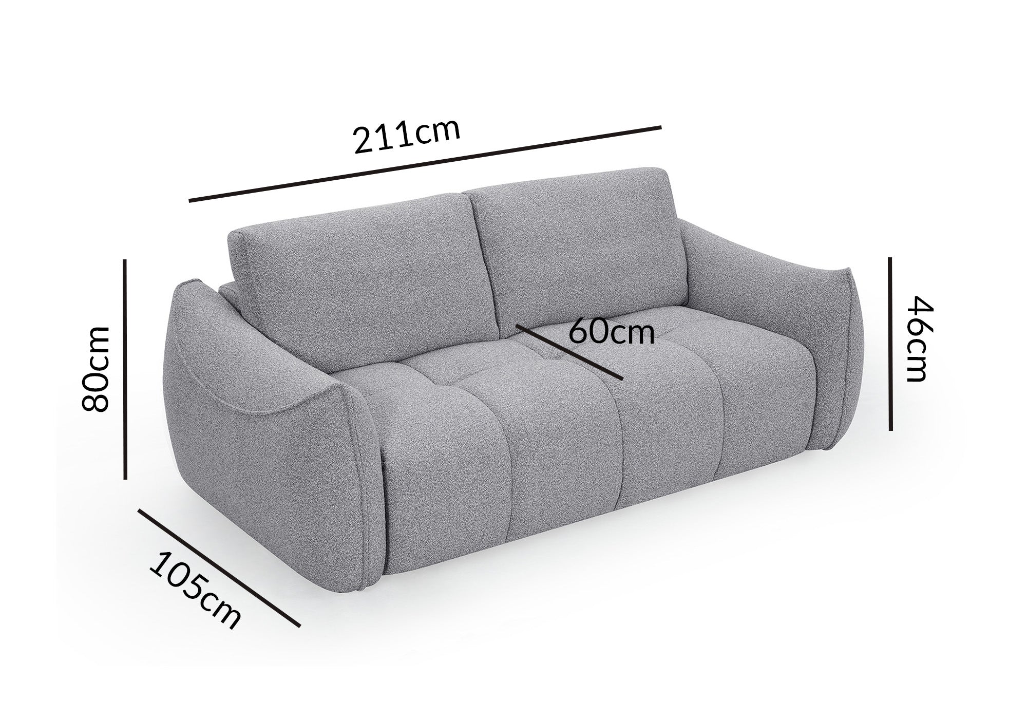 Diseñado para acoger cómodamente hasta tres personas, este sofá es robusto y duradero gracias a su sólida estructura. Sus líneas refinadas y cojines decorativos le aportan un toque de encanto, convirtiéndolo en un sofá tan elegante como práctico.