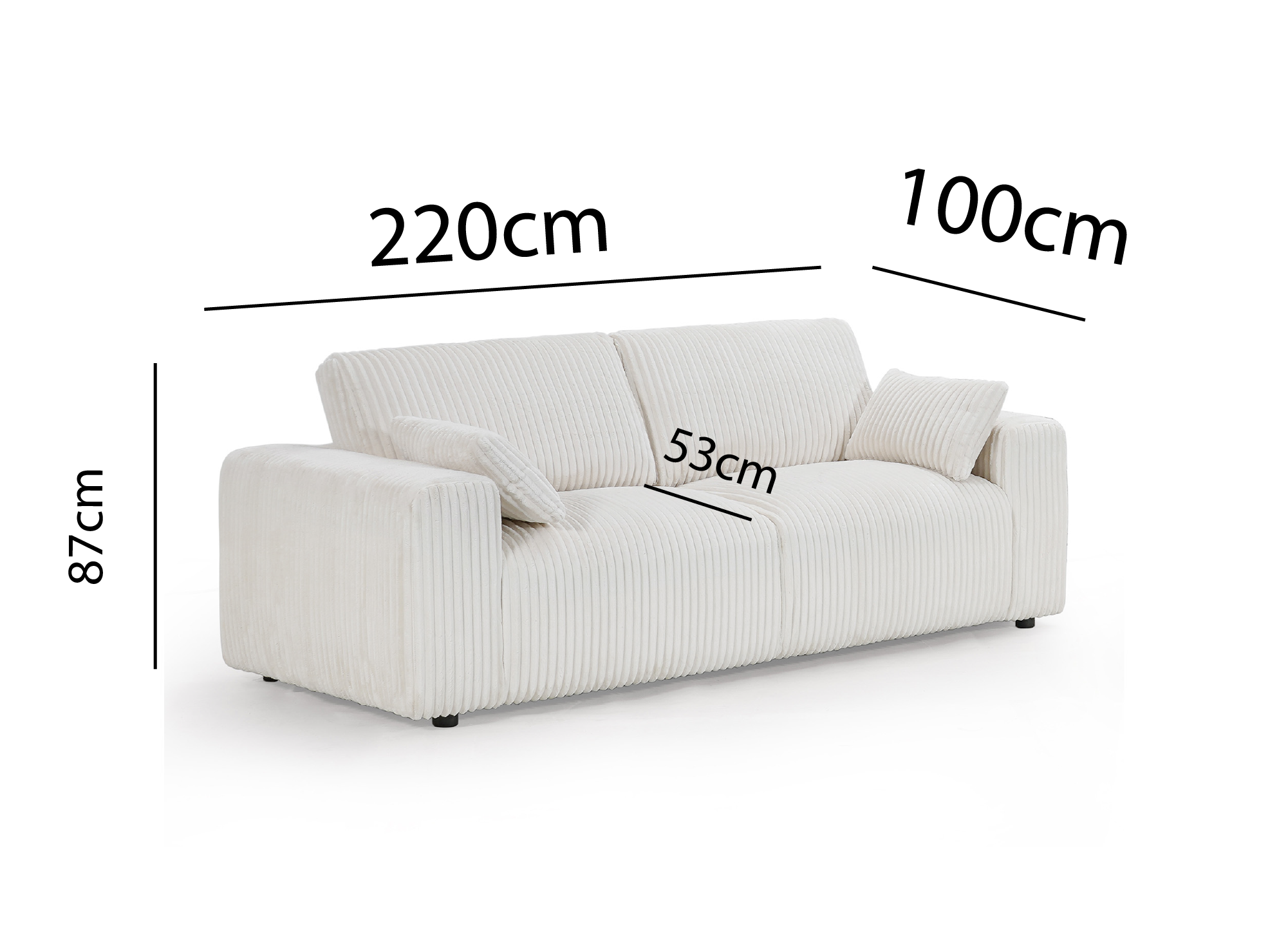 Con amplios reposabrazos y generosos cojines, este sofá de 3 plazas garantiza una comodidad óptima para sus momentos de relax. La tapicería de pana no solo es elegante, sino también duradera y fácil de cuidar. Las líneas puras y el aspecto lujoso de este tejido texturizado lo convierten en la opción perfecta para quienes buscan estilo y confort.