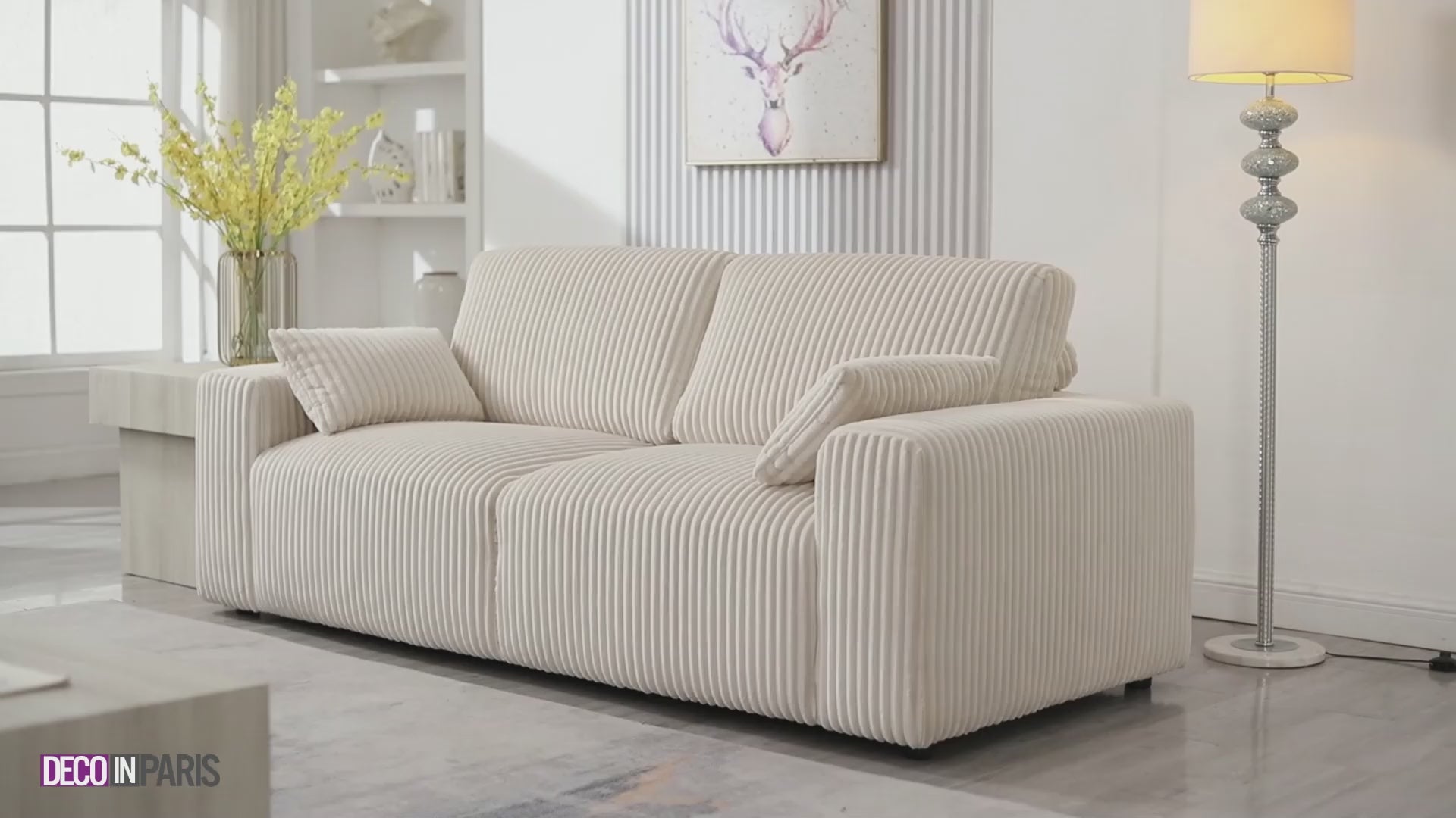Su textura y diseño moderno se integran a la perfección con interiores contemporáneos, creando un ambiente cálido y acogedor. La pana gruesa, suave al tacto y resistente, aporta profundidad visual a la decoración a la vez que ofrece una comodidad excepcional.