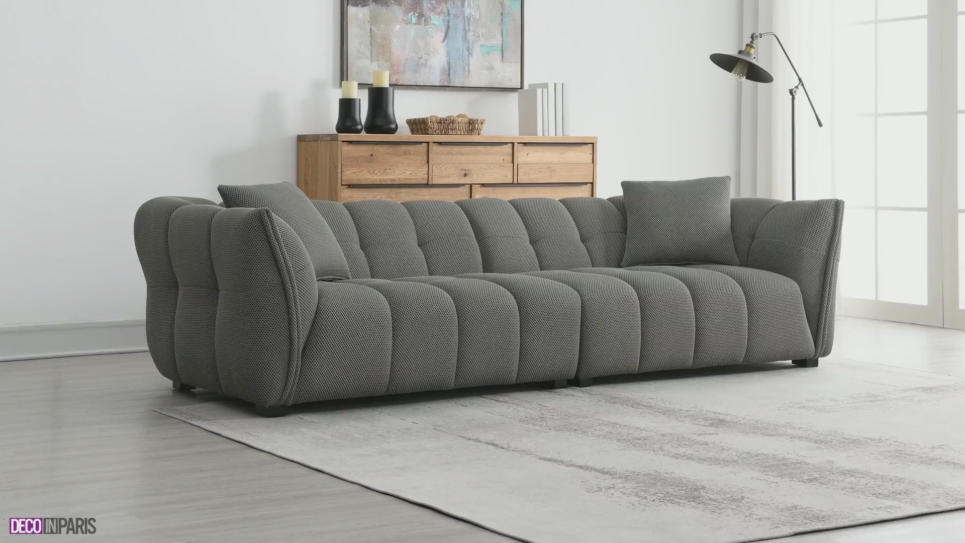 ¡Déjate seducir por nuestro sofá ELENA de 4 plazas en tejido 3D gris!