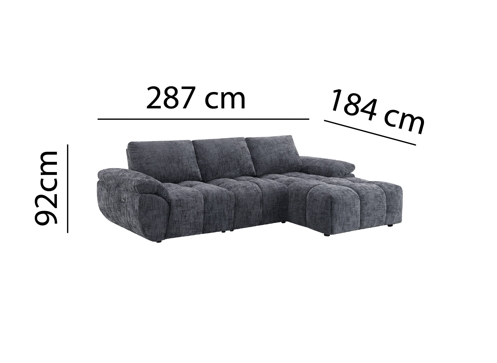 Sofá esquinero reclinable eléctrico ALPES en terciopelo gris jaspeado - Esquinero derecho