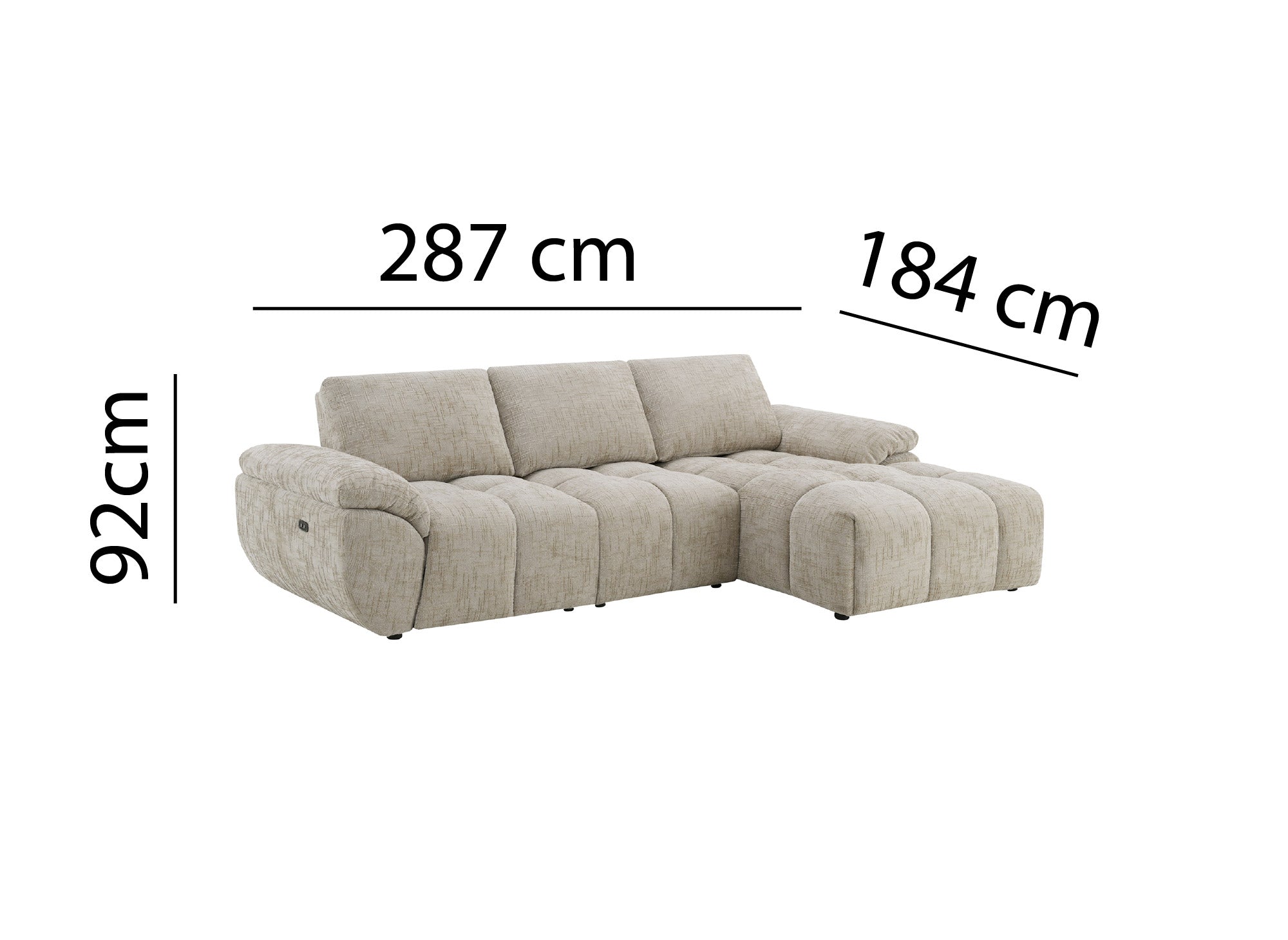 Sofá esquinero reclinable eléctrico ALPES en terciopelo jaspeado color topo - Esquina derecha