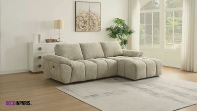 El terciopelo jaspeado, suave, resistente y elegante, le da a este sofá un aire acogedor sin renunciar a su diseño moderno. Se adapta fácilmente a tu espacio, perfecto para veladas relajantes, momentos de tranquilidad o para recibir invitados en un ambiente agradable. ¡Este sofá esquinero reclinable eléctrico ha sido diseñado para ofrecerte la máxima comodidad sin sacrificar el estilo!