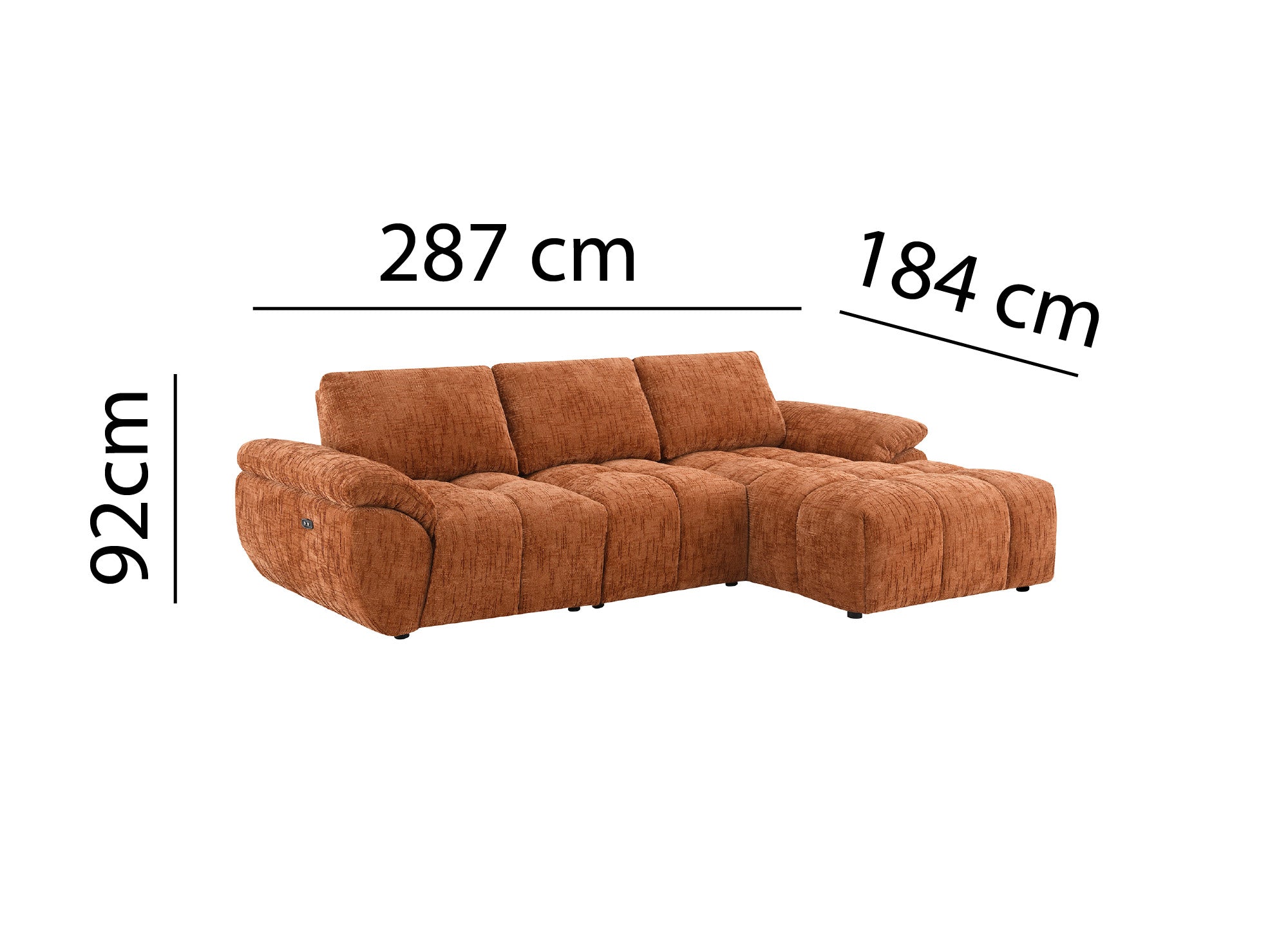 Sofá esquinero reclinable eléctrico ALPES en terciopelo jaspeado terracota - Esquina derecha