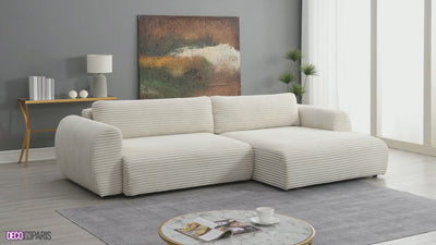 Convierta su salón en un espacio cálido y acogedor con el sofá esquinero convertible TILDA en pana gruesa, la solución ideal para combinar elegancia, comodidad y practicidad.
