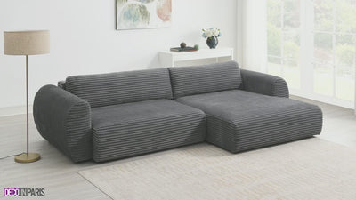 Convierta su salón en un espacio cálido y acogedor con el sofá esquinero convertible TILDA en pana gruesa, la solución ideal para combinar elegancia, comodidad y practicidad.