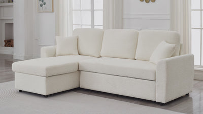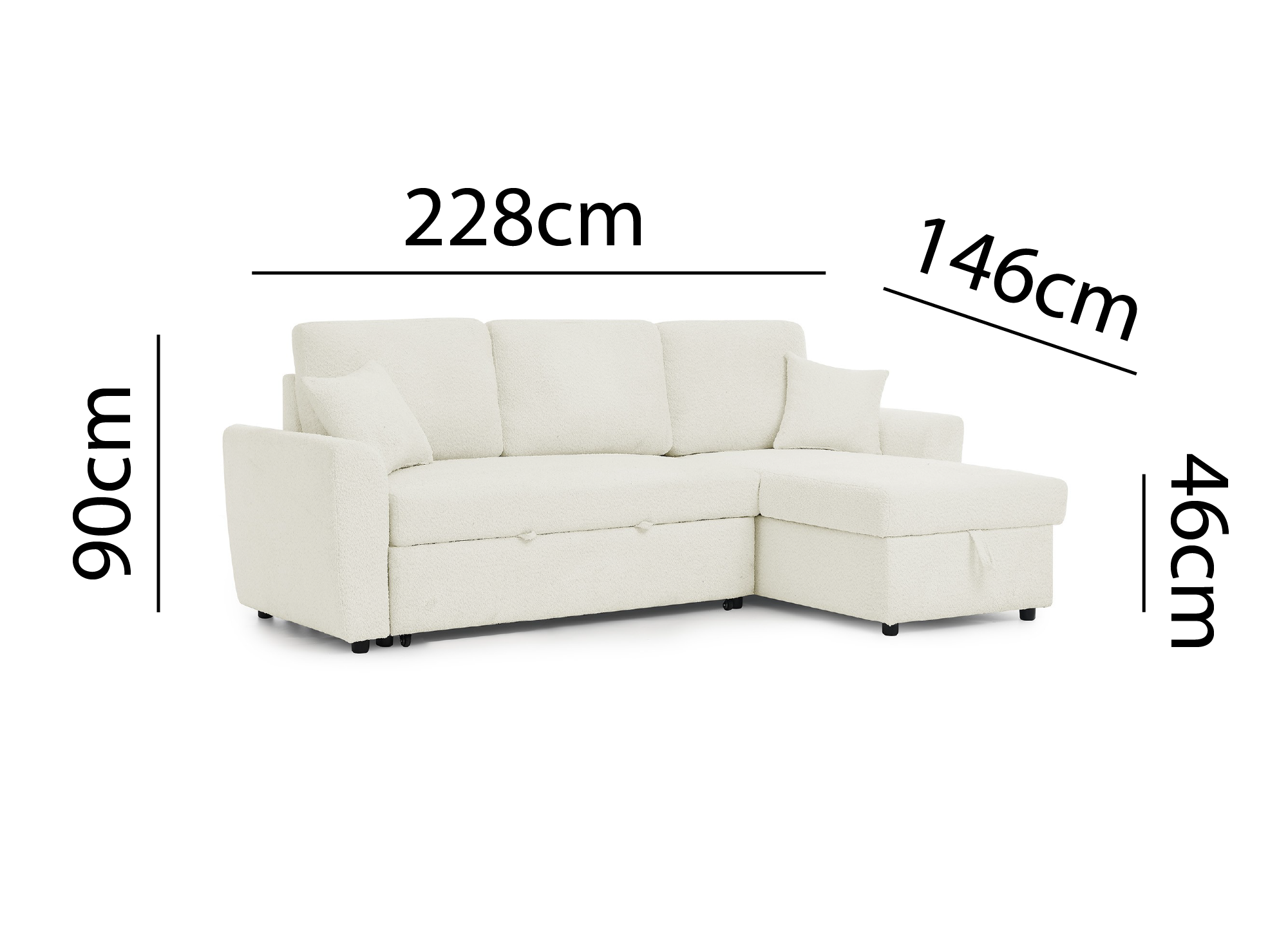 Sofá esquinero convertible y reversible ADRYEN con almacenaje en tejido bouclé beige