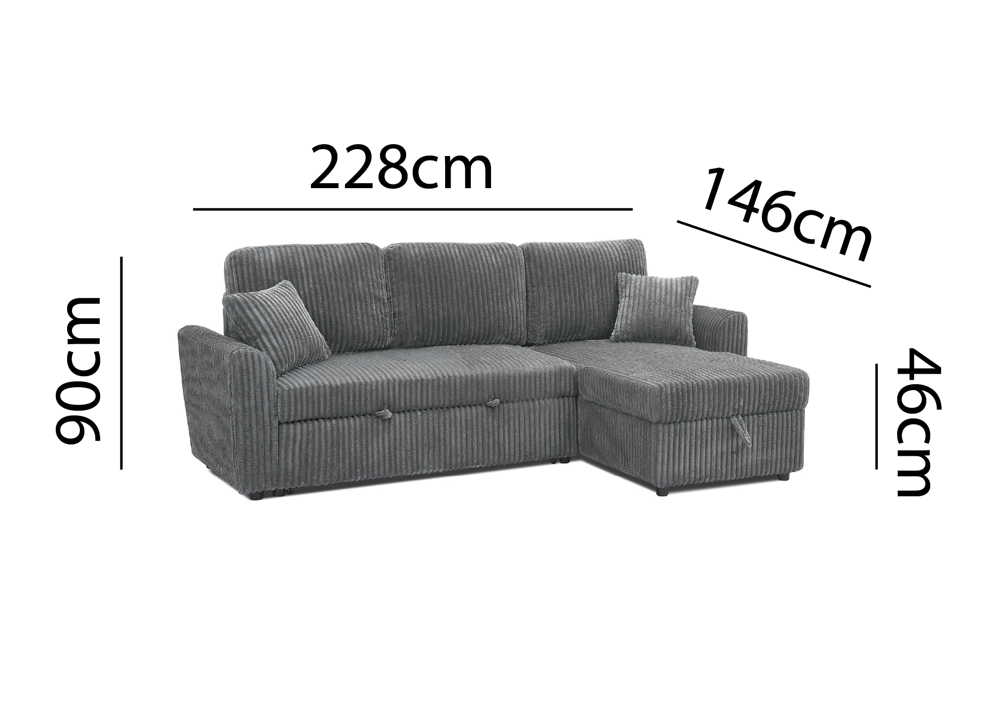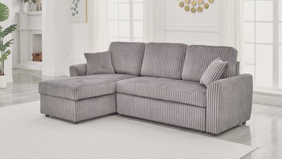 Sofá esquinero convertible y reversible ADRYEN con almacenaje en pana gris gruesa