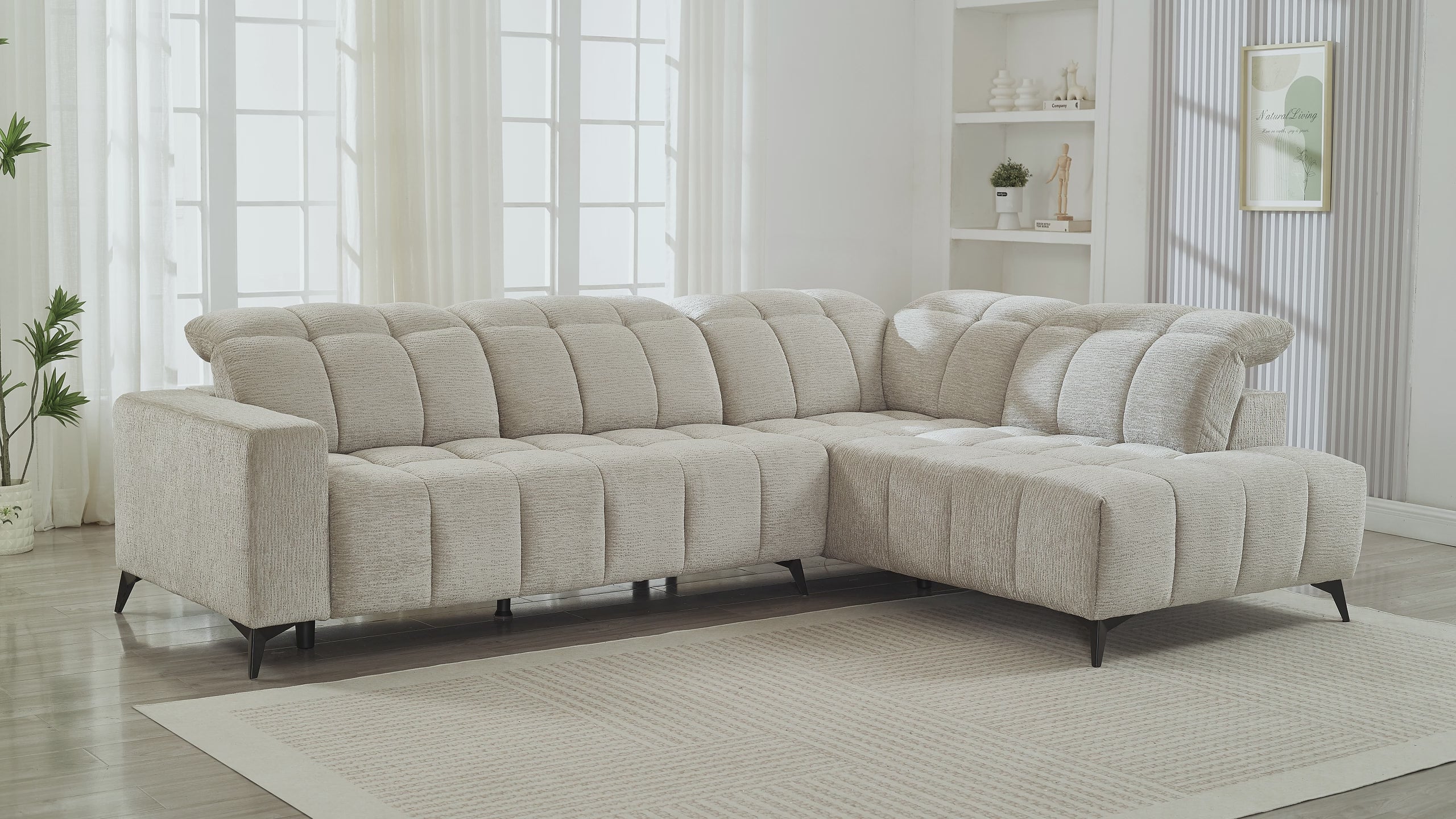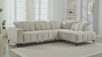 Sofá esquinero reclinable eléctrico ALVAR en terciopelo jaspeado beige - Esquinero derecho