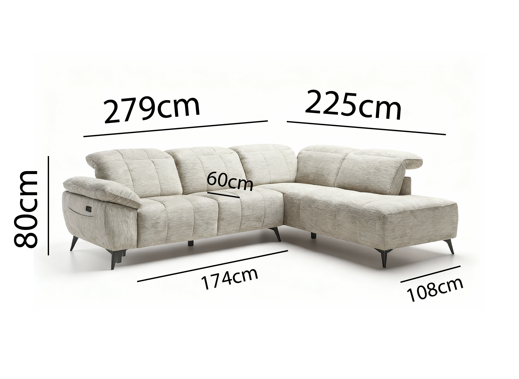 Con su diseño moderno y su confort superior, el sofá esquinero reclinable eléctrico SOLINA en terciopelo beige jaspeado invita a la relajación. Perfecto para salones amplios, combina una estética refinada con características bien pensadas para el uso diario.