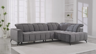 Sofá esquinero reclinable eléctrico ALVAR en terciopelo gris jaspeado - Esquinero derecho