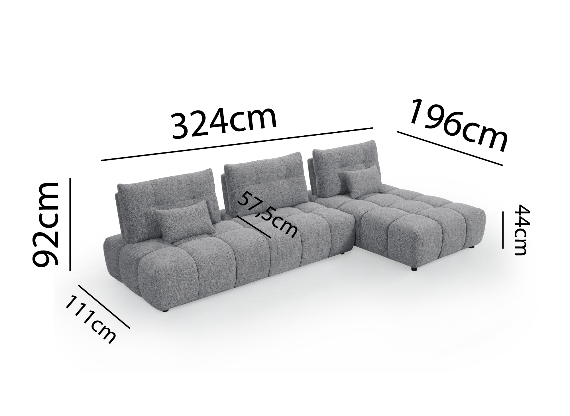 Sofá esquinero reversible ALANA en terciopelo gris texturizado