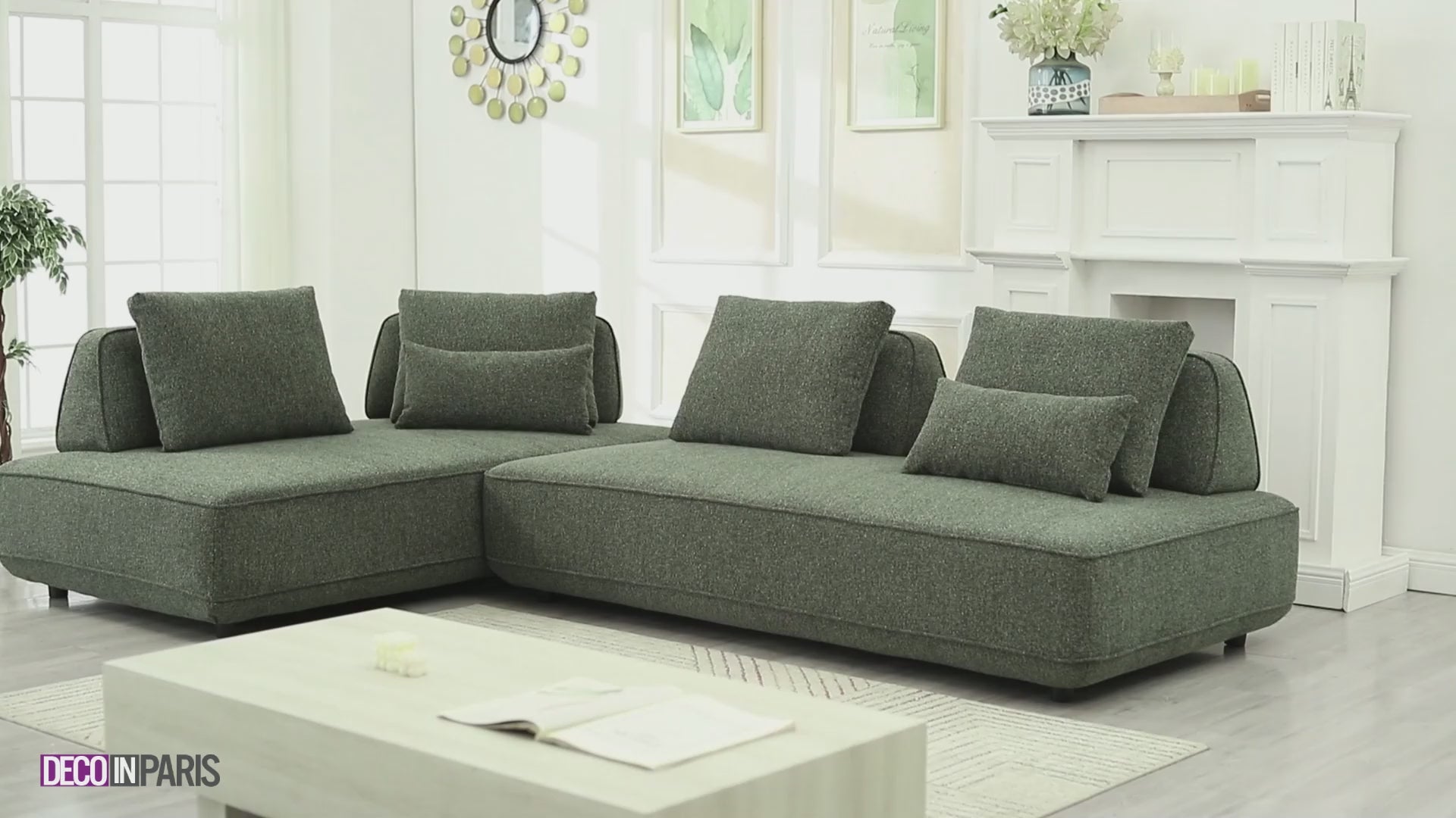 Aporte un toque de suavidad y elegancia a su sala de estar con el sofá esquinero reversible ISAORA en tela verde caqui jaspeada .
