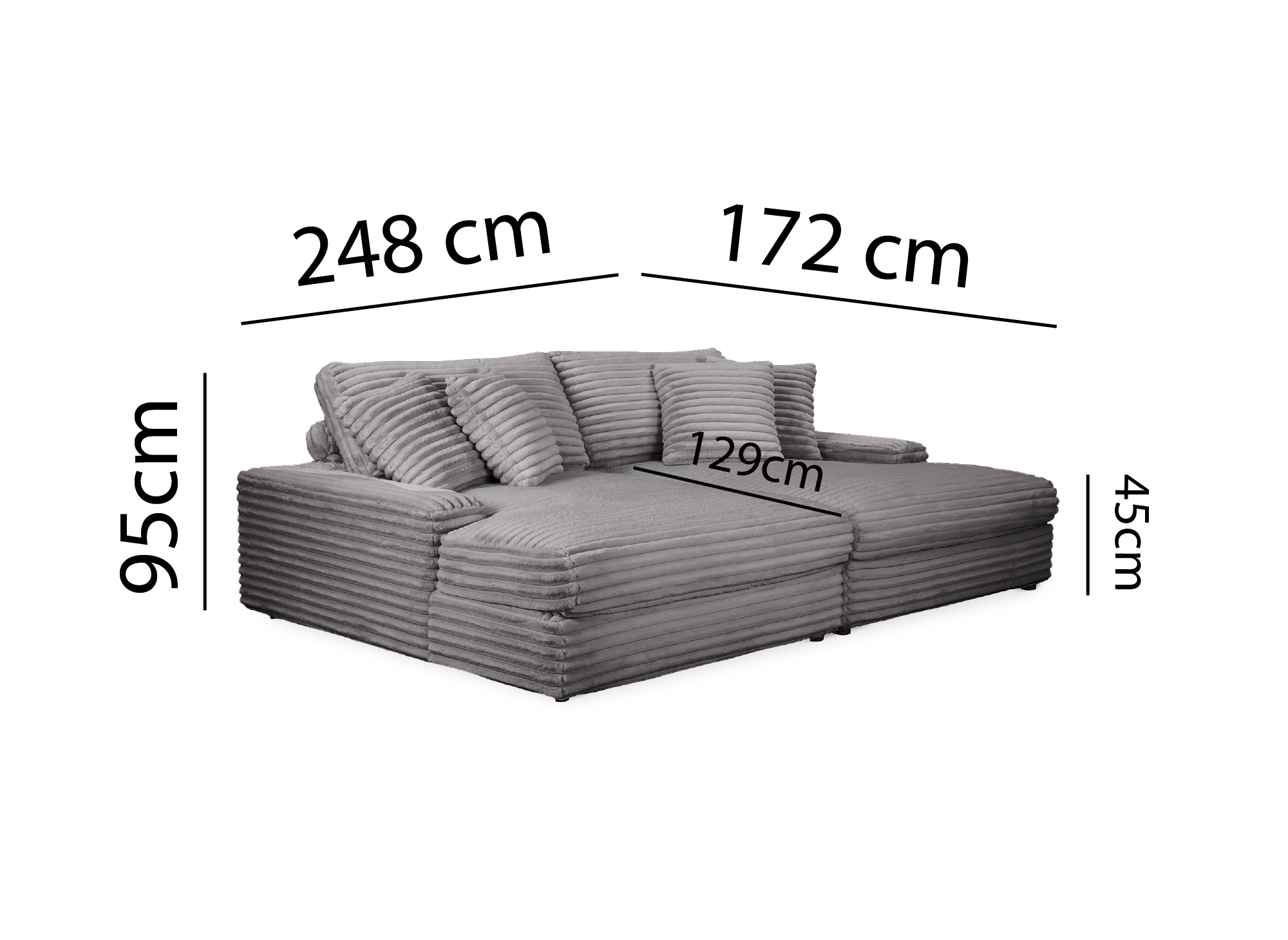 Dimensiones: Ancho 248 cm x Profundidad 172 cm x Altura 89 cm / Altura del asiento: 46 cm