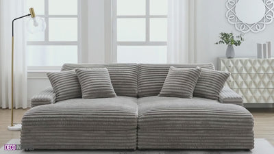 Sofá recto de 2 plazas DAHO en tejido acanalado gris suave
