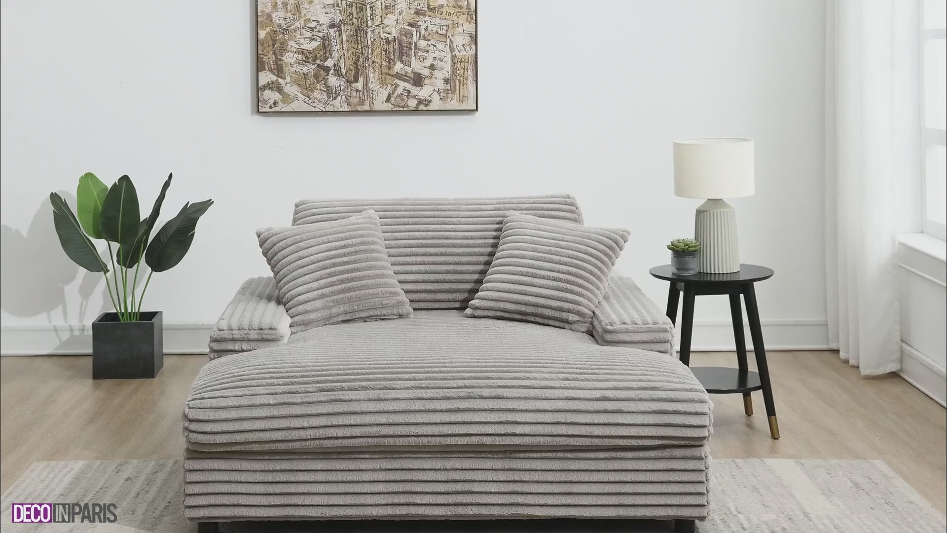 Sofá chaise longue individual DAHO en terciopelo gris de rayas anchas