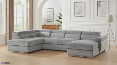 ¡Transforma tu salón en un espacio cálido y confortable con el sofá cama esquinero derecho MARIANO con compartimento de almacenaje en pana gris gruesa !