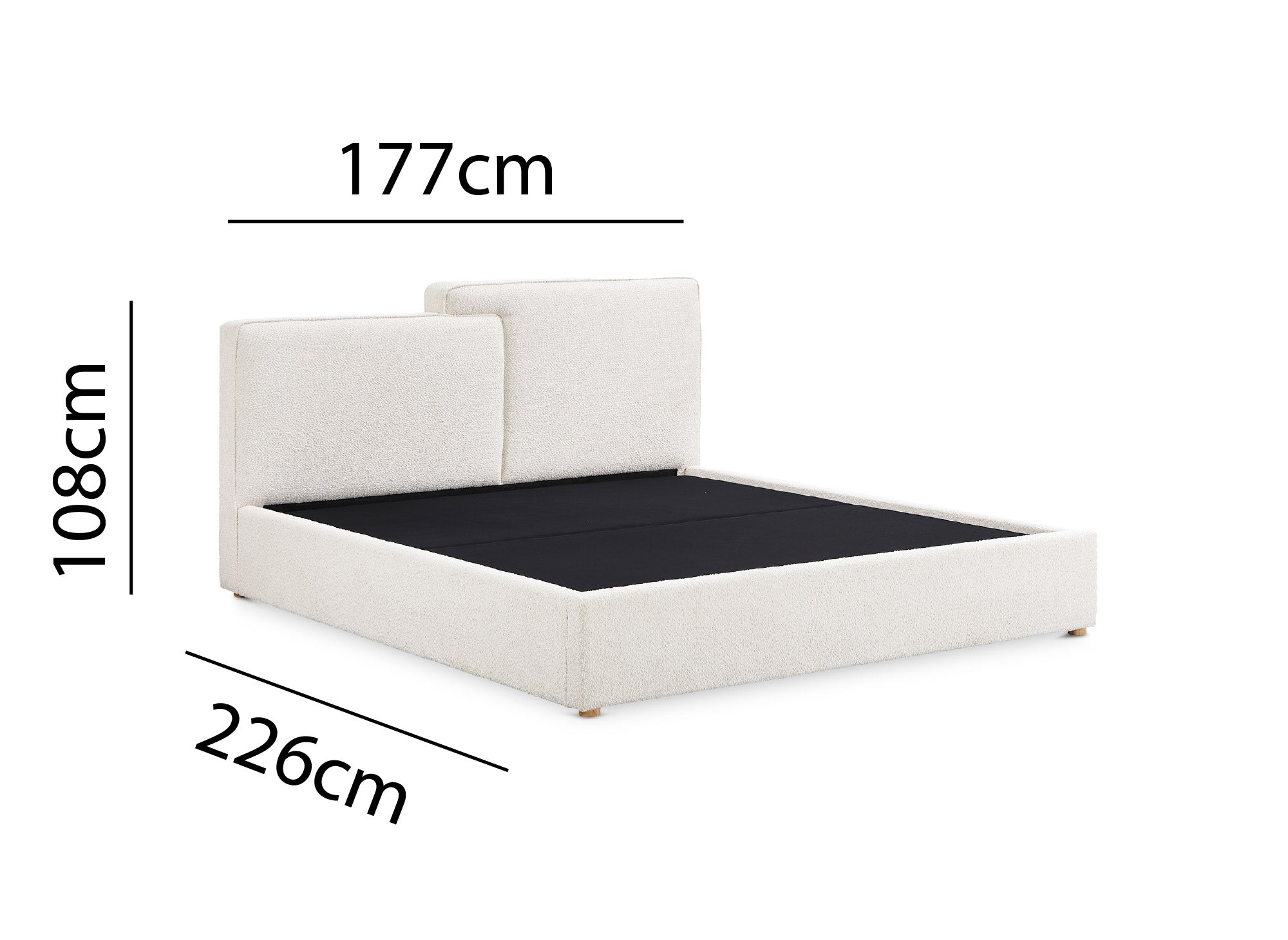 Tapizada en un tejido suave, texturizado y con bucles en tono beige, esta cama combina armoniosamente con cualquier tipo de decoración interior.
