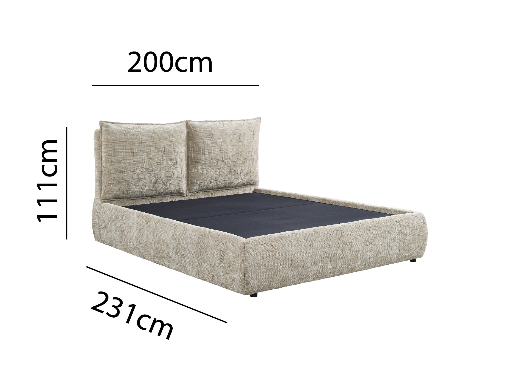 Cama de almacenaje MILENA de 180x200 cm en terciopelo jaspeado color topo