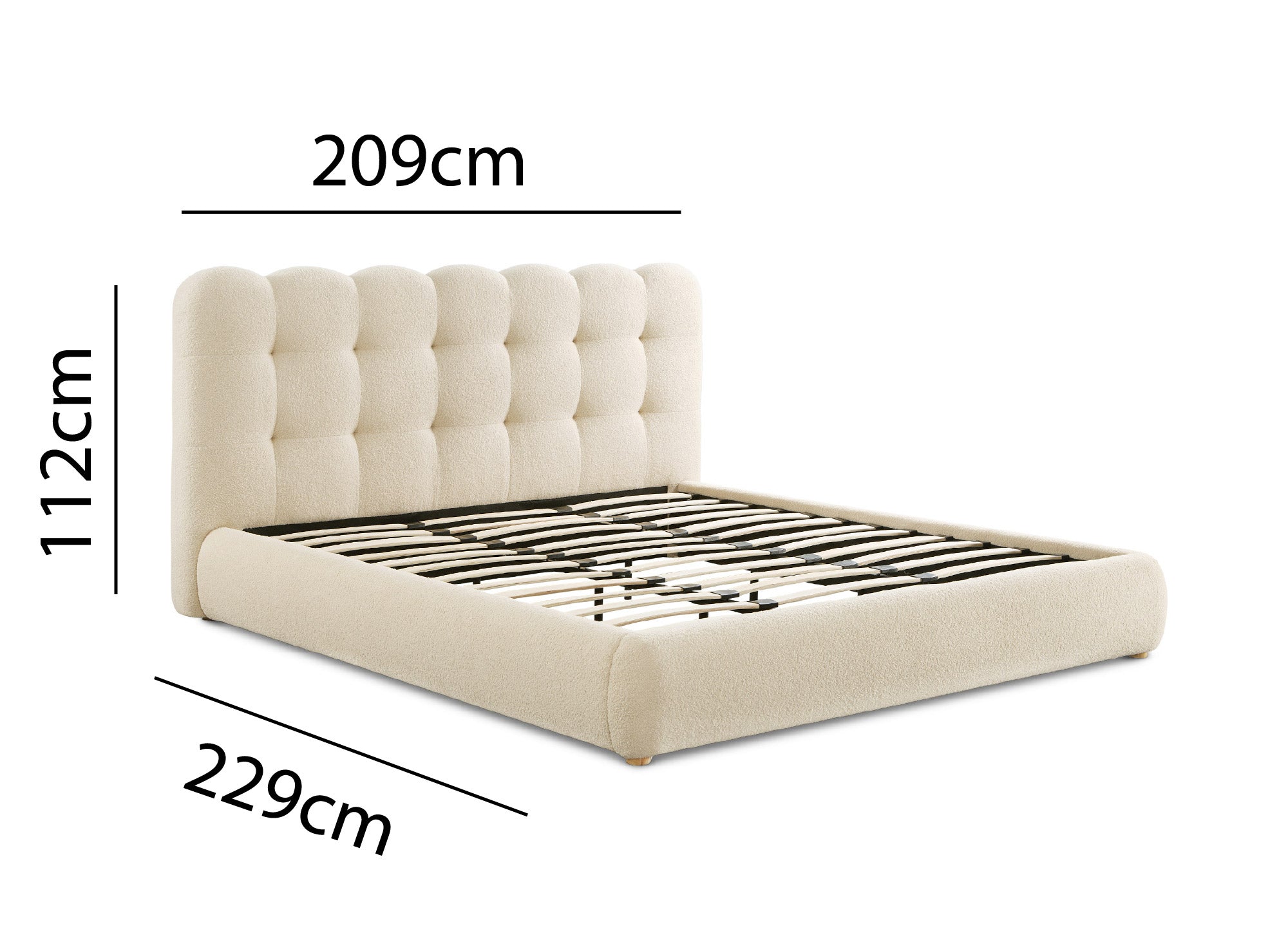 Transforma tu dormitorio con esta cama doble de 180x200 cm en tejido bouclé color beige BISCUIT , que combina comodidad, elegancia y funcionalidad.