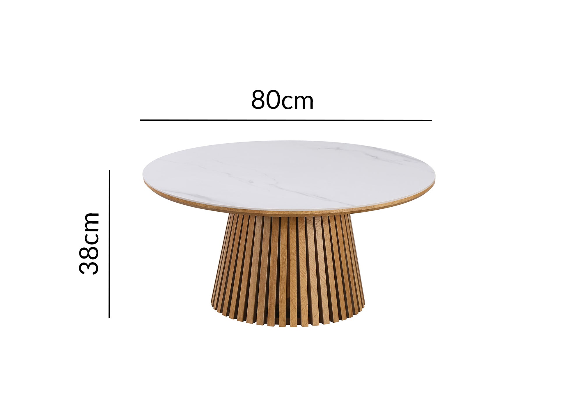 Mesa de centro redonda HEKA de madera clara con tablero de cerámica blanca