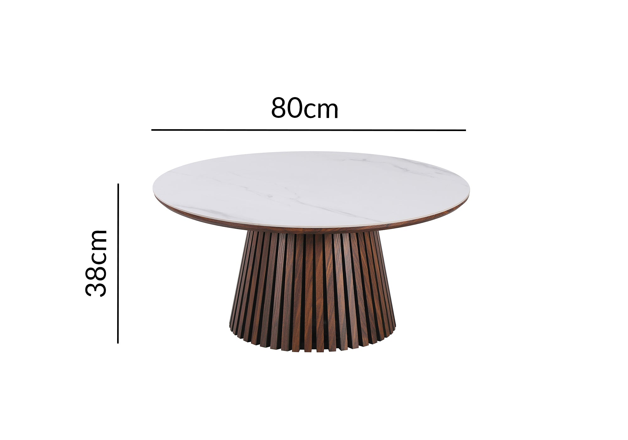 Mesa de centro redonda HEKA de madera oscura con tablero de cerámica blanca