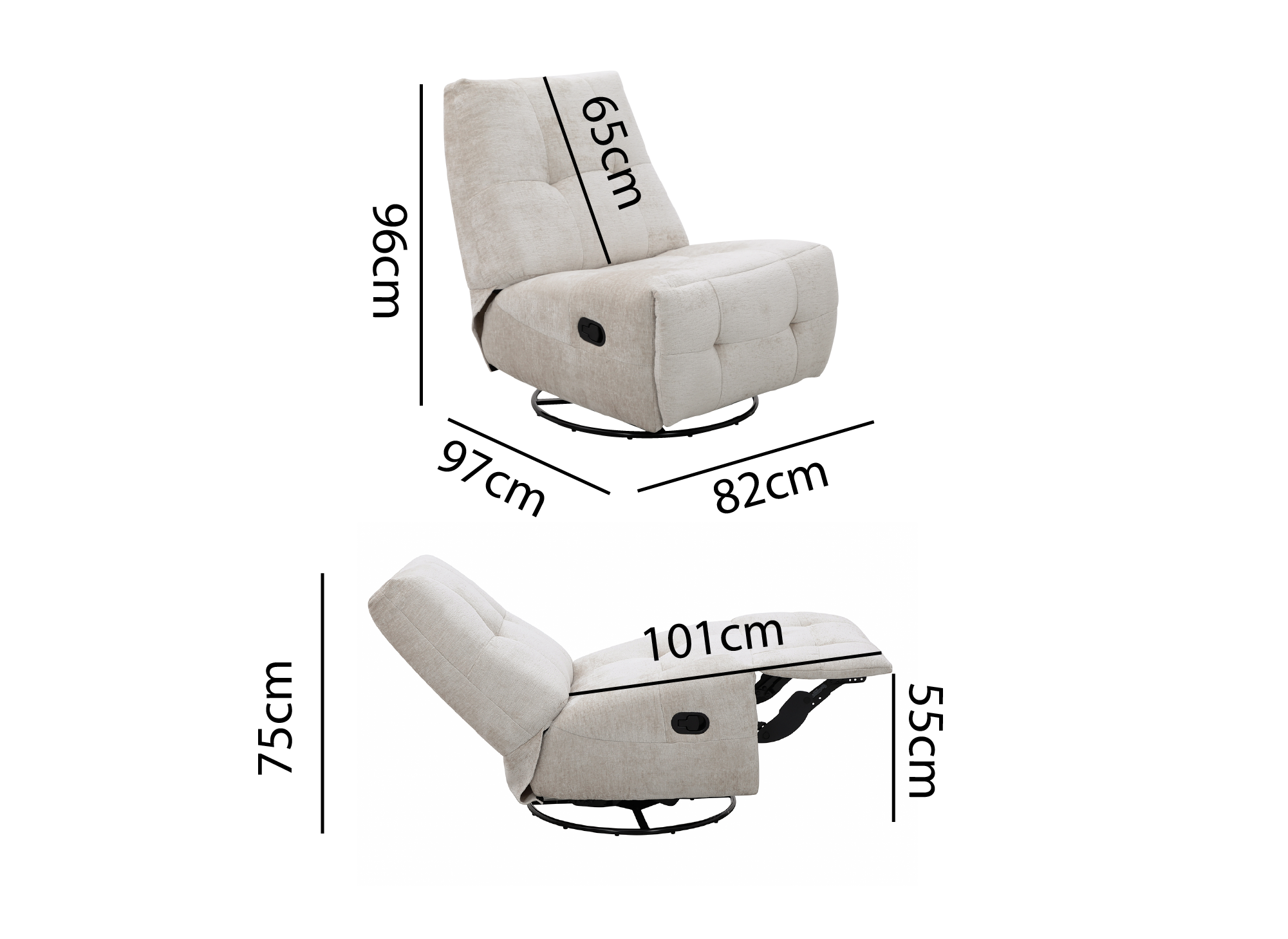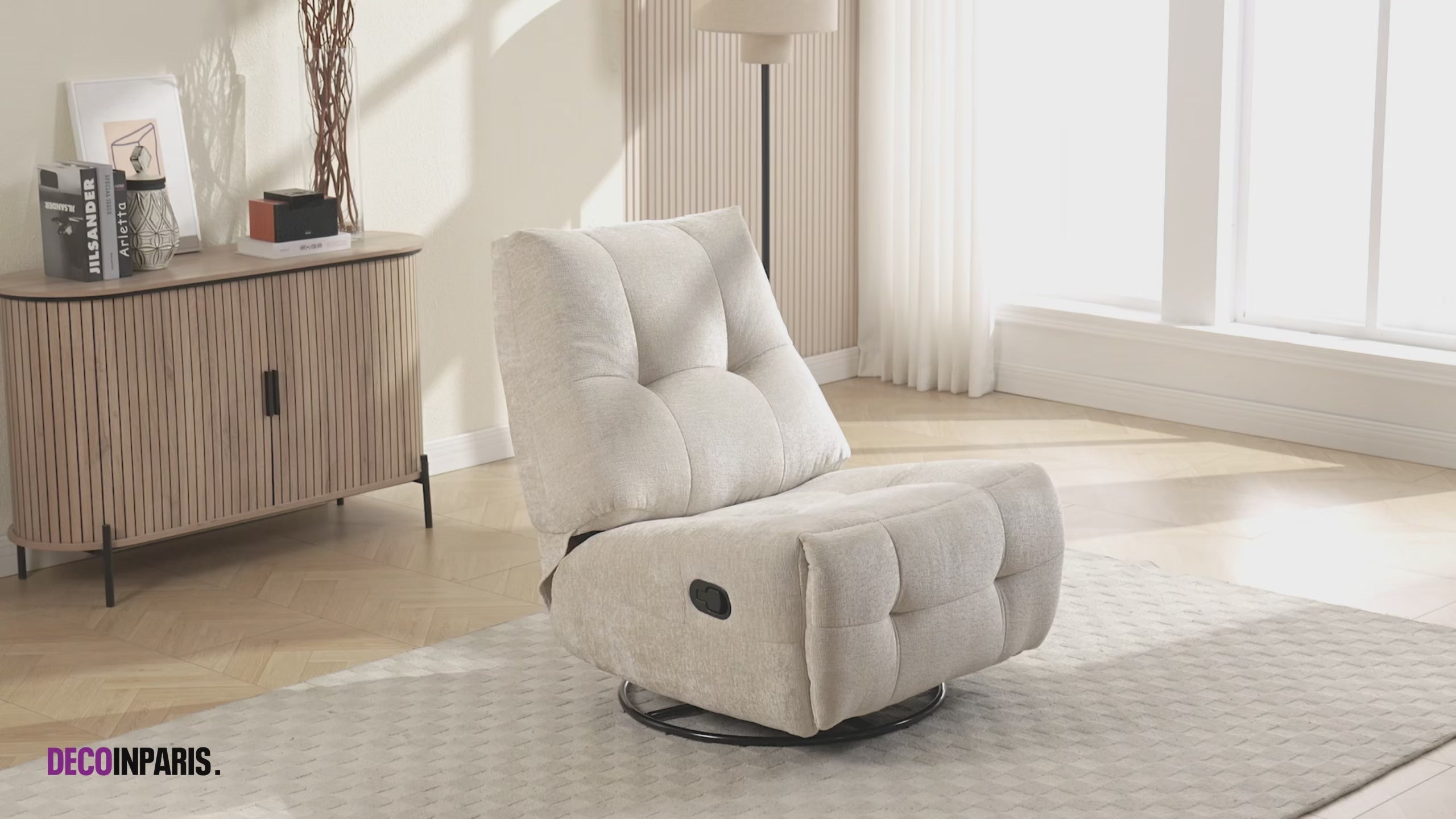 Sillón reclinable giratorio LISON en terciopelo jaspeado beige