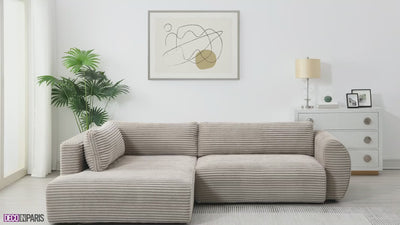 El sofá cama esquinero TILDA en pana color topo es, por lo tanto, la combinación perfecta de comodidad, elegancia y practicidad, transformando su sala de estar en un espacio acogedor y sofisticado.