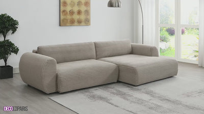 Convierta su salón en un espacio cálido y acogedor con el sofá esquinero convertible TILDA en pana gruesa, la solución ideal para combinar elegancia, comodidad y practicidad.
