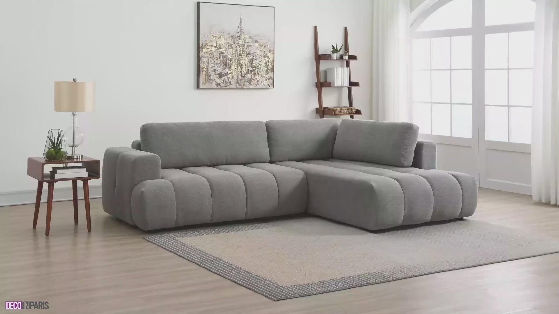 Sofá cama esquinero HAVEN con almacenaje en tela gris - Esquina derecha