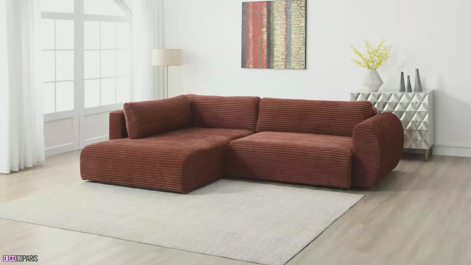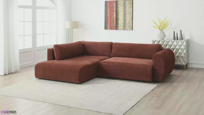 El sofá esquinero convertible TILDA en pana color terracota es, por lo tanto, la combinación perfecta de comodidad, elegancia y practicidad, transformando su sala de estar en un espacio acogedor y sofisticado.