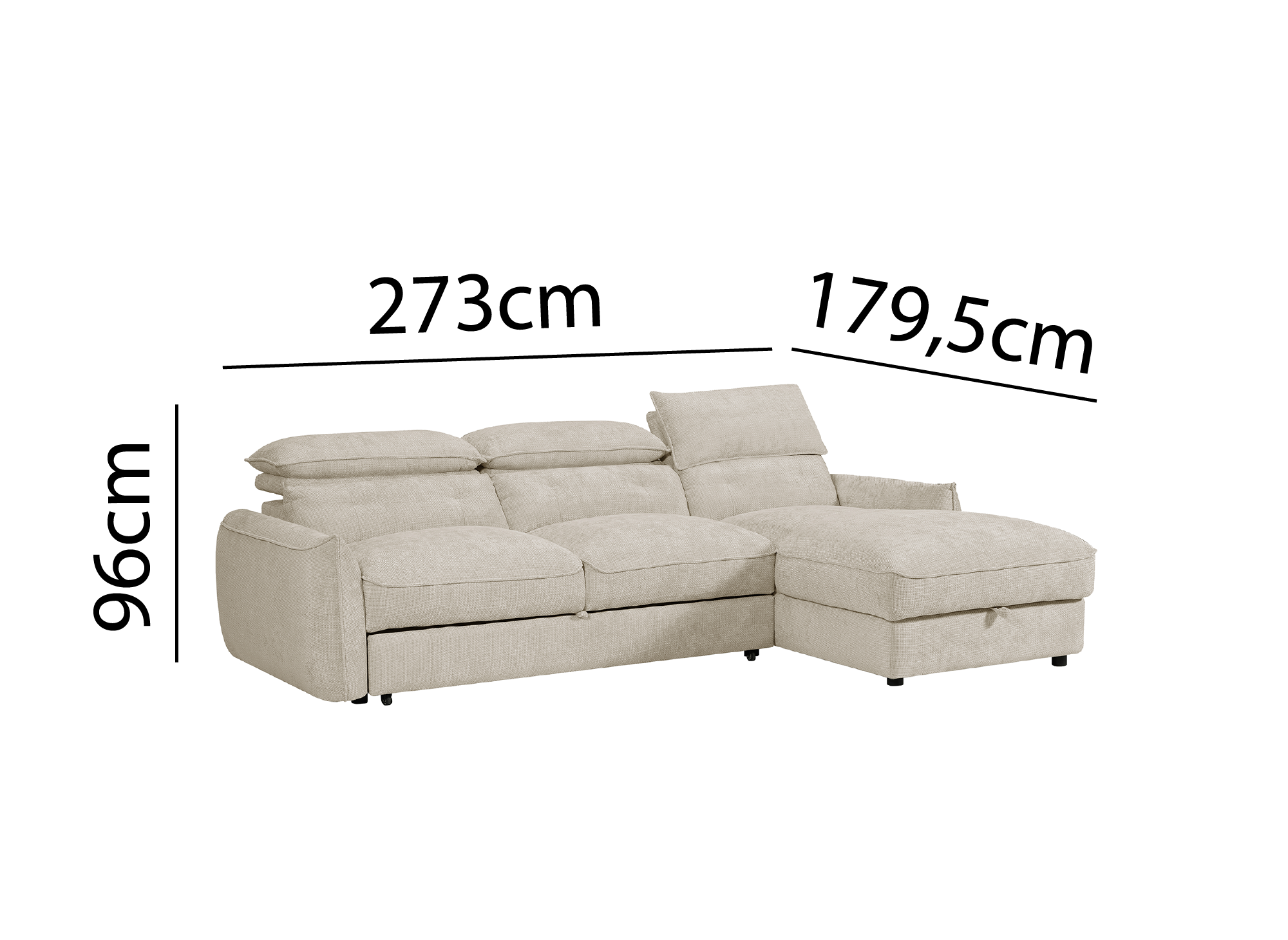 Práctico y funcional, este sofá se transforma en cama en un abrir y cerrar de ojos gracias a su mecanismo de fácil uso. Su chaise longue con almacenaje integrado es ideal para organizar edredones, almohadas, mantas o sábanas.