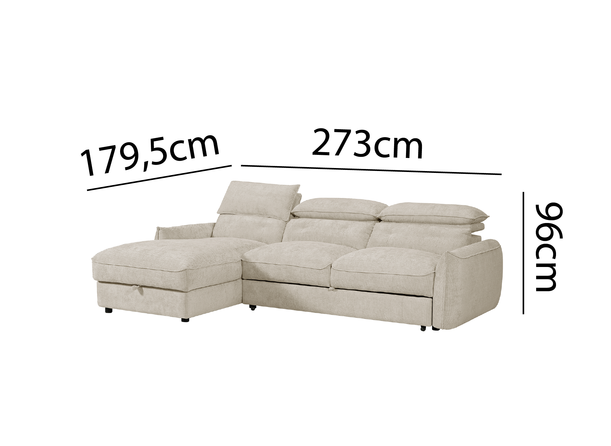 Práctico y funcional, este sofá se transforma en cama en un abrir y cerrar de ojos gracias a su mecanismo de fácil uso. Su chaise longue con almacenaje integrado es ideal para organizar edredones, almohadas, mantas o sábanas.