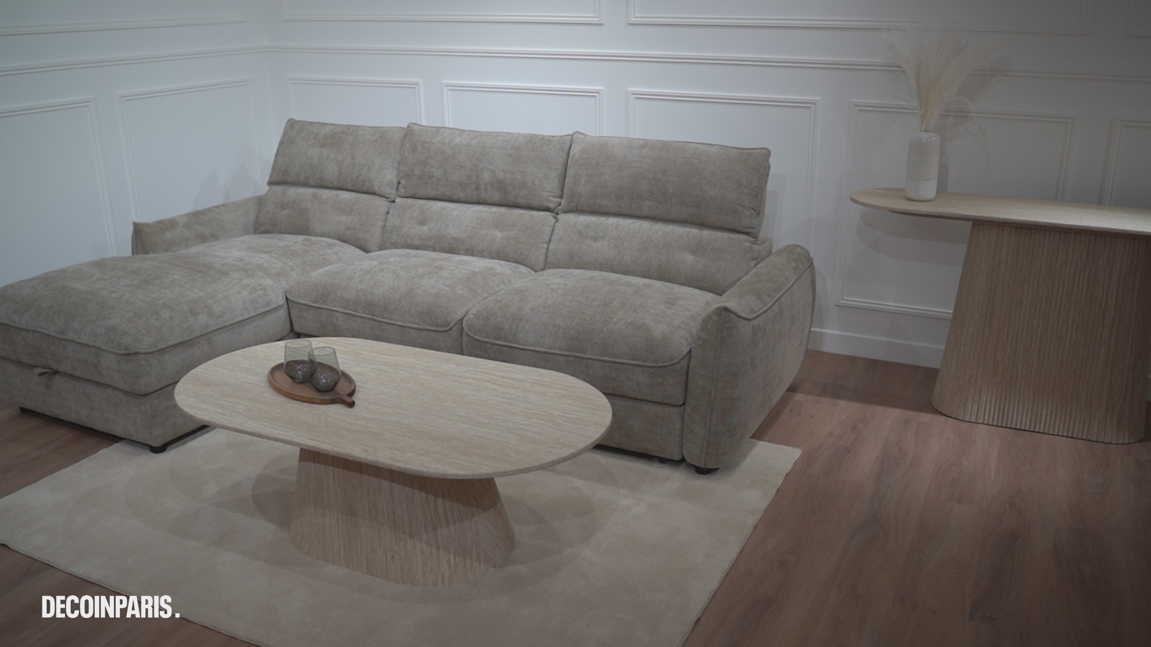 Sofá cama esquinero SAMINA con almacenaje en terciopelo jaspeado color topo - Esquina izquierda