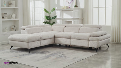 Sofá esquinero convertible LUFY con almacenaje en terciopelo jaspeado blanco roto - Esquina izquierda