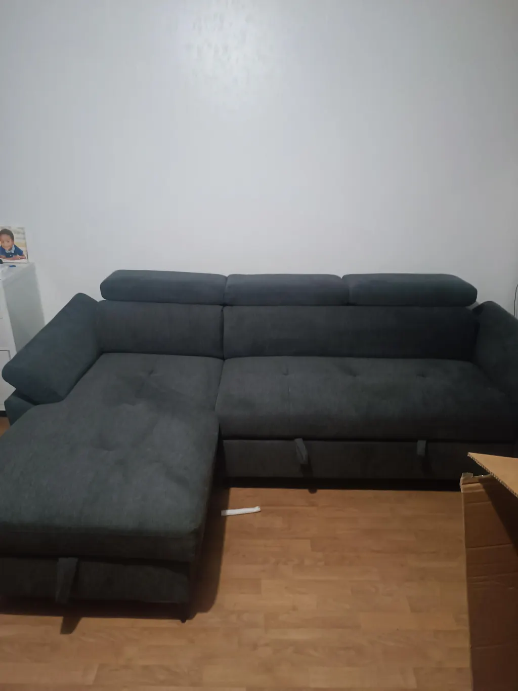 Sofá cama esquinero MONICA en tela gris oscuro - Esquina izquierda