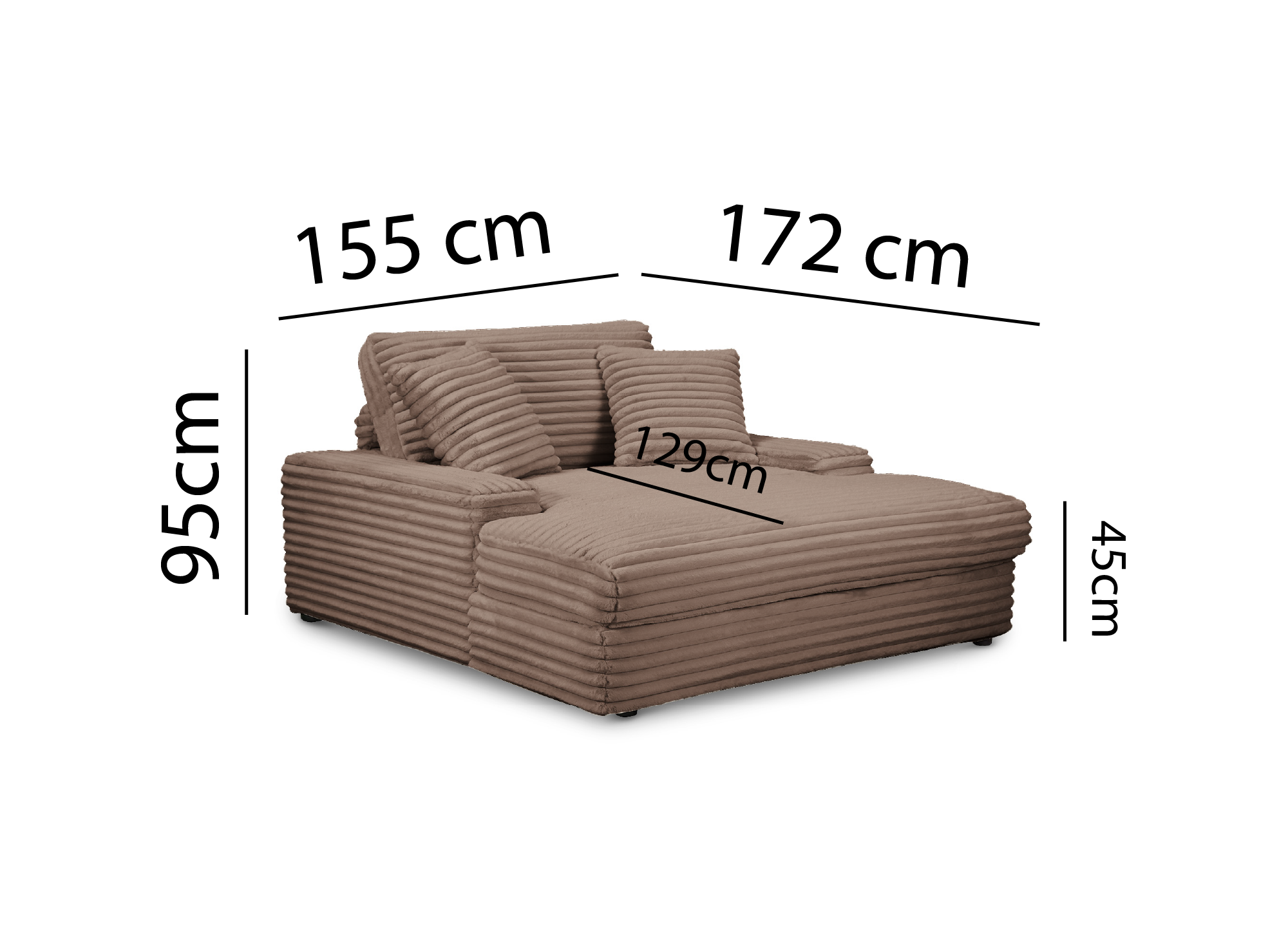 La chaise longue DAHO XL destaca por su diseño compacto y elegante, ideal para optimizar espacios reducidos sin renunciar al estilo. Su gruesa y suave pana le aporta un toque de sofisticación y confort.