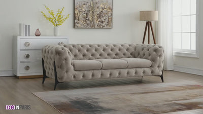 Sofá fijo CARMEN de 3 plazas, estilo Chesterfield capitoné, terciopelo beige