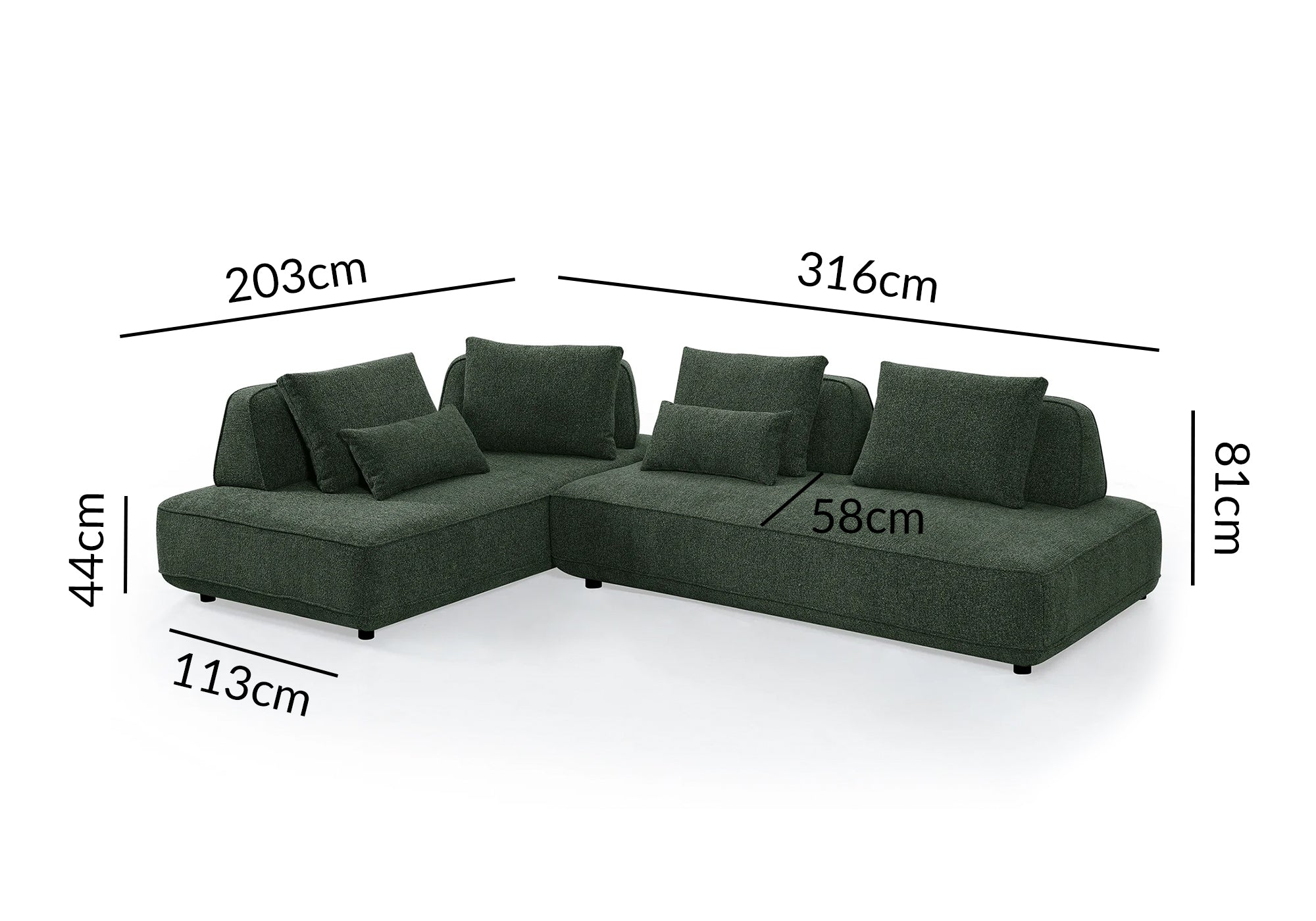 Aporte un toque de suavidad y elegancia a su sala de estar con el sofá esquinero reversible ISAORA en tela verde caqui jaspeada .