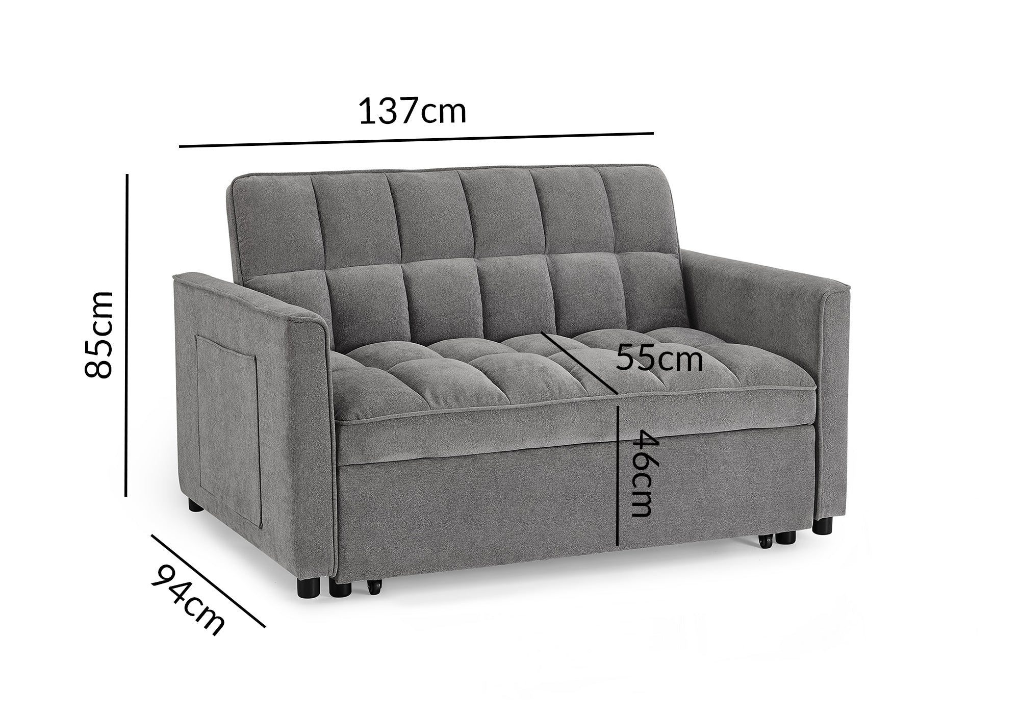 Sofá cama JASPER de 2 plazas en terciopelo gris texturizado