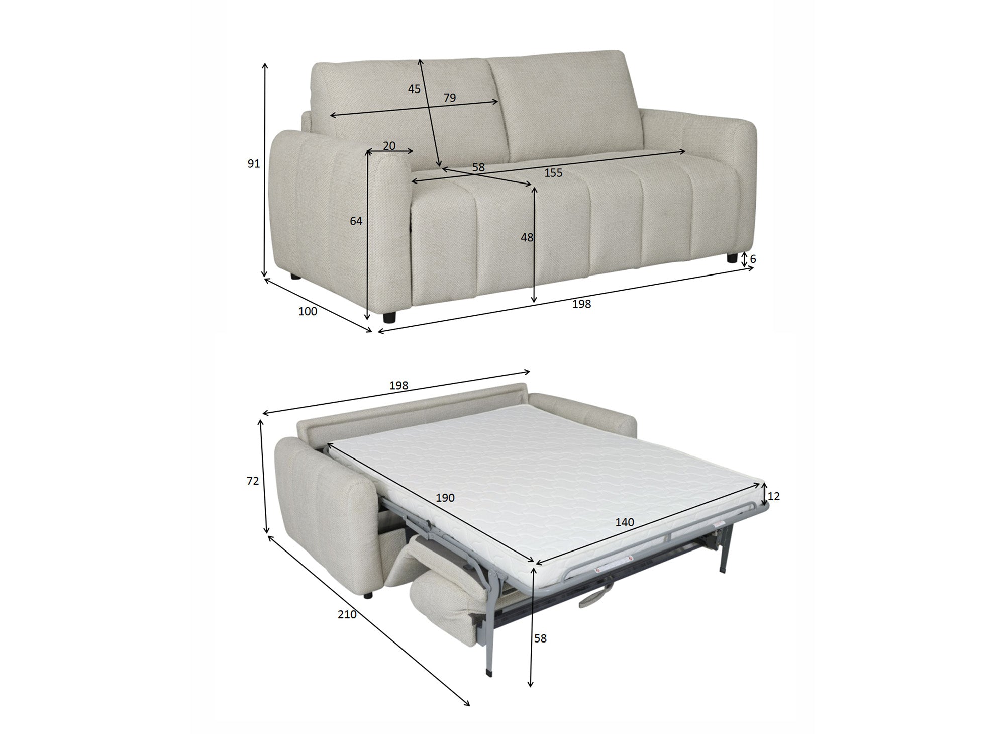 Sofá cama ISANDRO de 3 plazas en tela beige