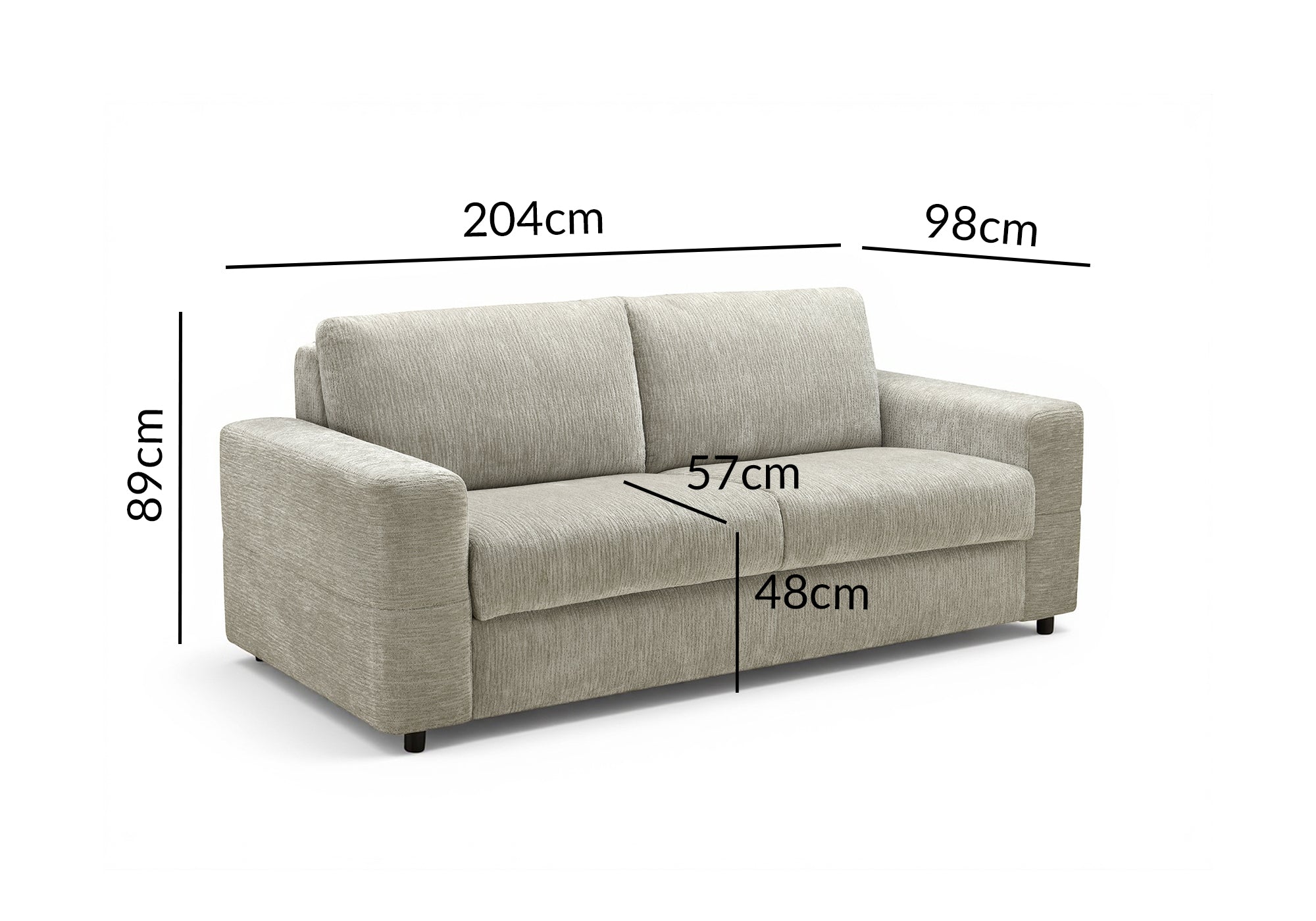 Gracias a su sistema de apertura rápida «rapido», AMAURY se transforma en cama en un abrir y cerrar de ojos, sin esfuerzo y sin necesidad de quitar los cojines. El colchón integrado de 12 cm de grosor garantiza un descanso confortable tanto para uso diario como ocasional.