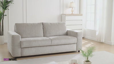 Sofá convertible express de 3 plazas AMAURY en terciopelo jaspeado beige