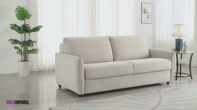 Sofá convertible express de 3 plazas CHIARA en terciopelo texturizado beige