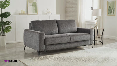 Sofá convertible exprés de 3 plazas NONA en terciopelo jaspeado gris oscuro