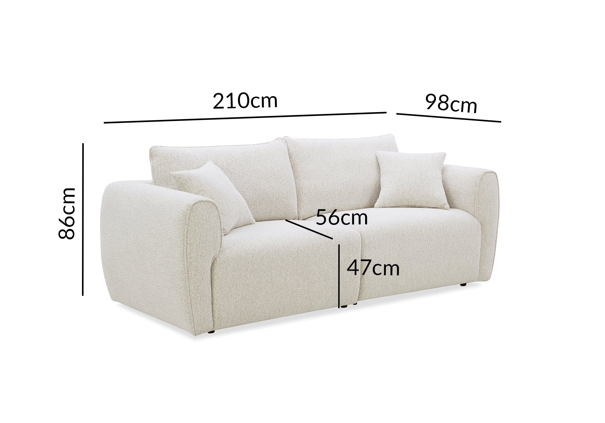 Incluye dos cojines a juego, ofreciendo mayor comodidad y un toque armonioso al conjunto. Perfecto para compartir momentos en familia, recibir invitados o simplemente relajarse tras un largo día, el sofá de 3 plazas NALYA combina una elegancia discreta con la comodidad del día a día.